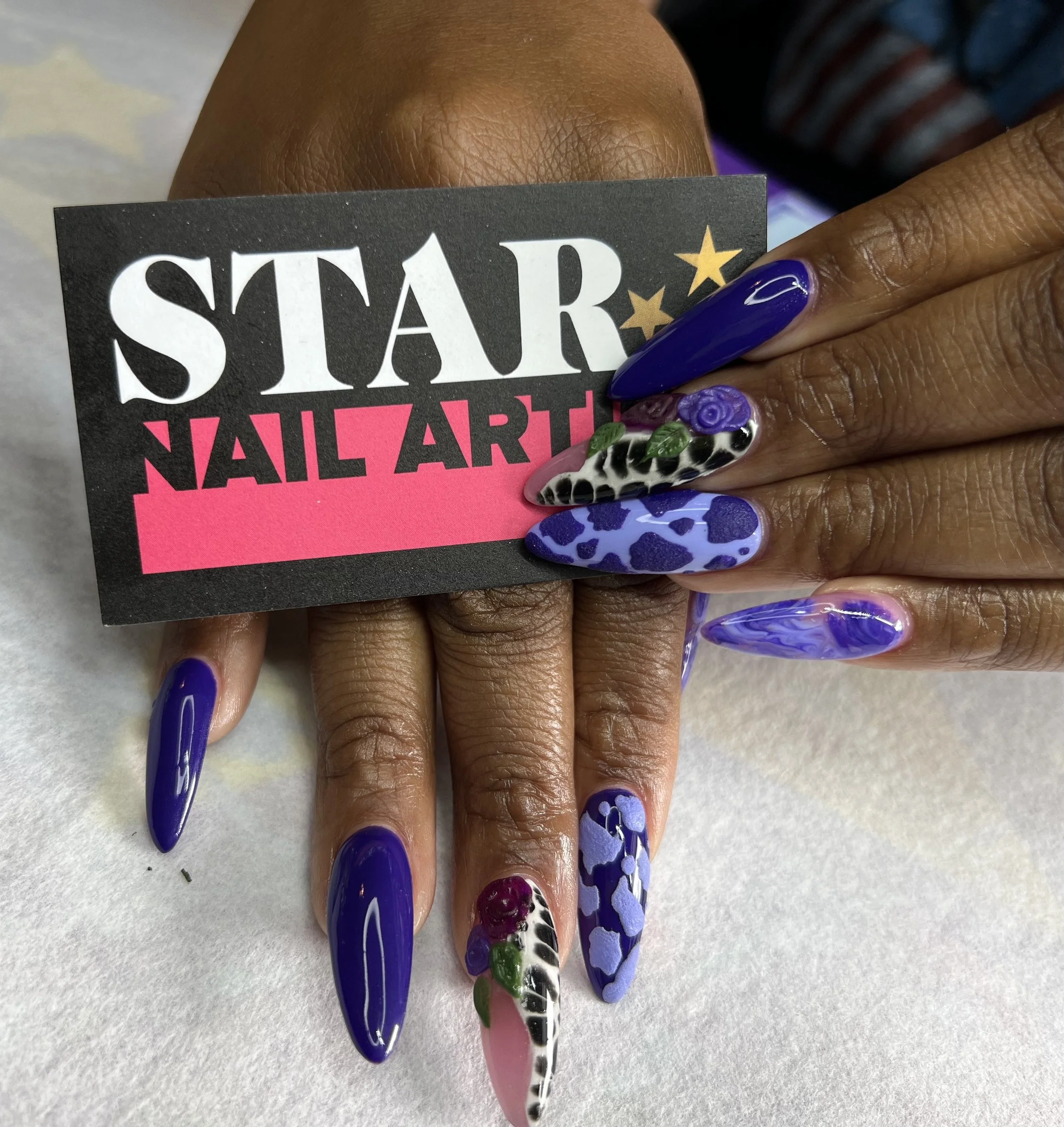 My journey into the beauty industry started in 2001, my junior year at Martin Luther King Jr. Senior High School. As a junior, I was offered an opportunity to attend Crockett Vocational Center and enroll in their manicuring program. Upon completing the course, I encountered my first hurdle: I didn’t pass the State Board Exam. However, that didn’t stop me from wanting to continue pursuing my passion and education in the world of beauty. Years later, I moved to Greensboro, NC, and enrolled in Carolina Beauty College’s cosmetology program. After enduring the intricate course of studies, I obtained my cosmetology license from the State of NC a year later. At that moment in time, I knew I was destined for greatness and that I was called by God to bless others with my gifts. I consider myself a seasoned veteran in this beauty field with over 20+ years of experience. Making people feel good and helping with self-confidence has always been my passion and purpose. A few words I would use to describe myself are creative, pleasantly eccentric, dedicated, loyal, and passionate. I am a Nail Artist whose main goal is to exude professionalism at all times, perform quality services, and create an unforgettable experience for my clients.
